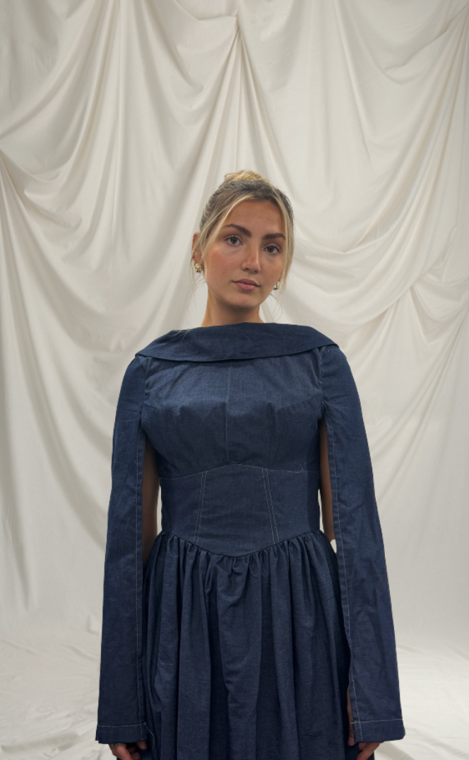 Blending structured denim with flowing satin and chiffon, each piece tells a story of transformation, how garments, like people, can find harmony and belonging when surrounded by the correct elements. Much like oil and Water, destined to separate yet paradoxically beautiful in their resistance, this collection celebrates the beauty of contrasts and the power of coexistence.